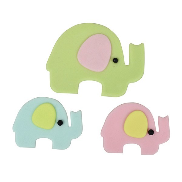 Create the cutest elephants for cakes and cupcakes with the Mummy and Baby Elephant Cutter Set. The cutter set comes in four parts: 2 cutters for the bodies and 2 cutters to add the elephant’s features. The cutters can be used with sugarpaste/fondant, modelling paste, modelling chocolate, flower paste, marzipan and more. The toppers are great for almost any occasion including birthdays, baby showers and Christenings. The cutters are also incredibly simple to use: just roll out your fondant or gumpaste etc, lay the cutters over, push down firmly, then tap out of the cutter and you’re done! If you have a little trouble removing the design from cutter, try a scriber tool to ease it out.