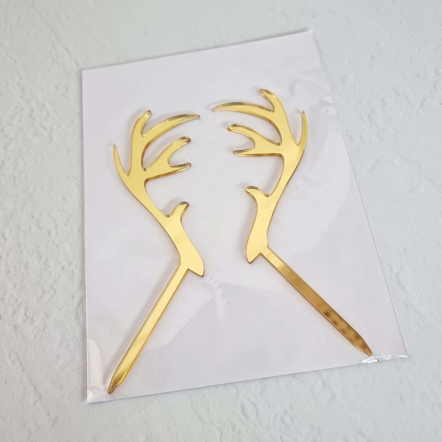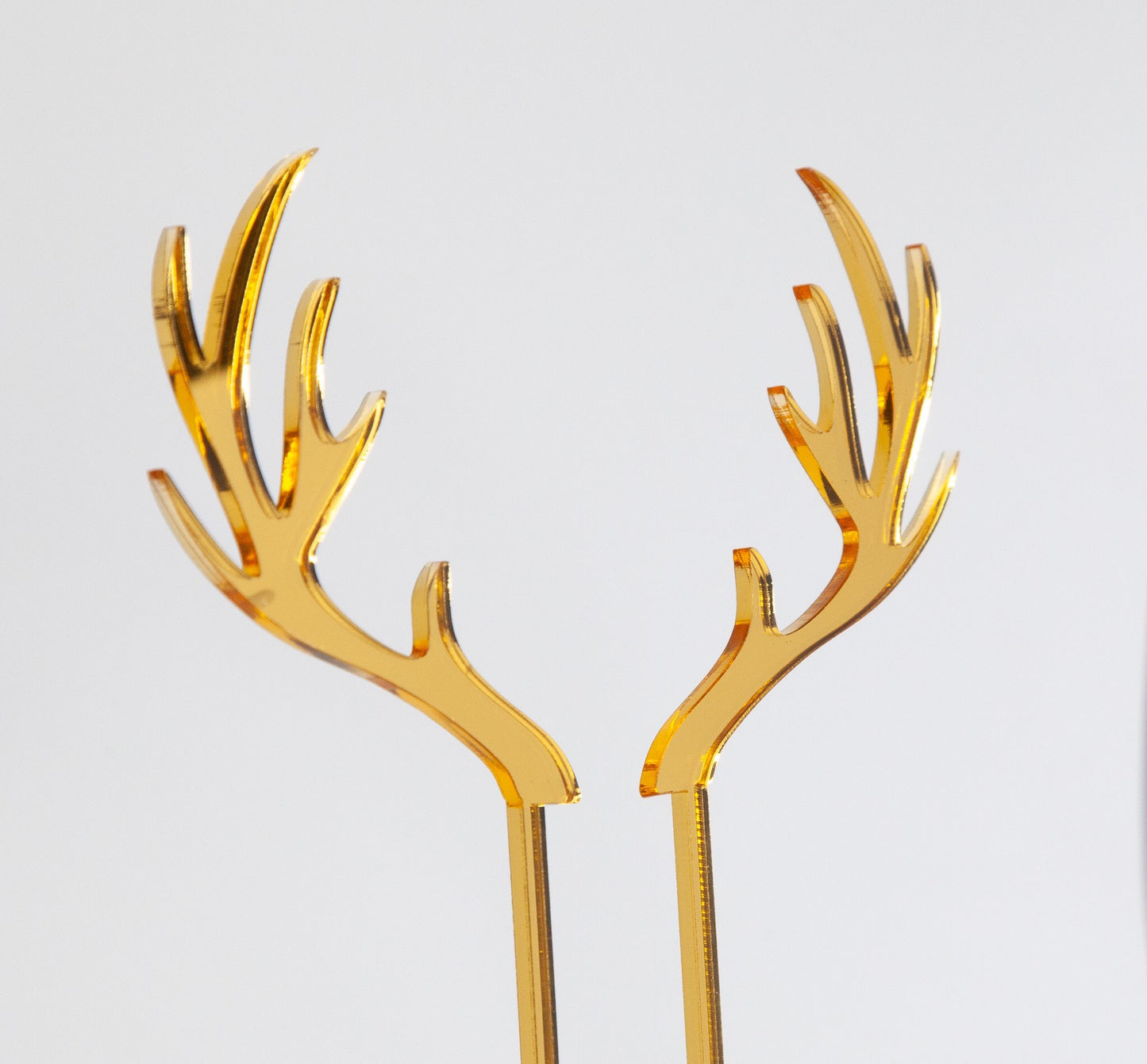 Cake Topper - Reindeer Antlers - Gold Acrylic.
