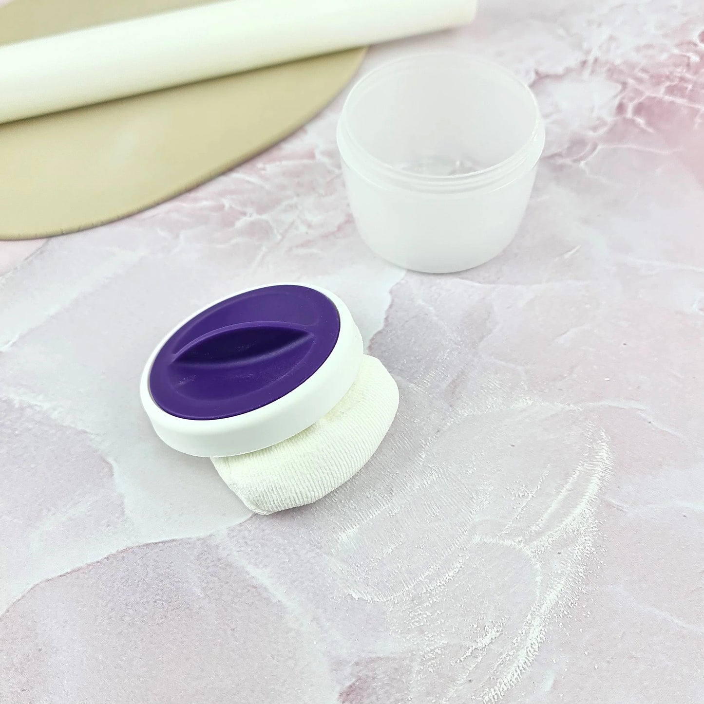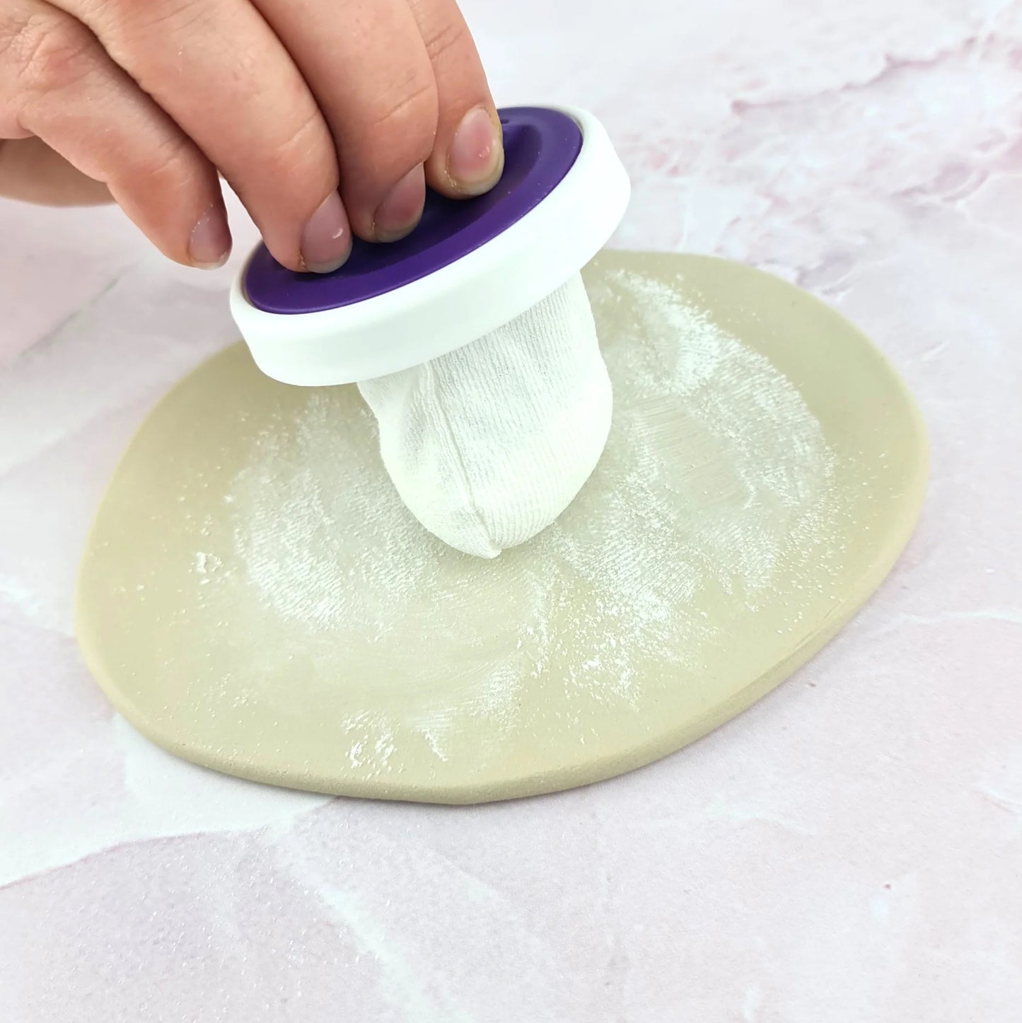 This easy to use anti-sticky dusting pouch prevents sticking when working with fondant and makes two-toning and mold release a breeze.
