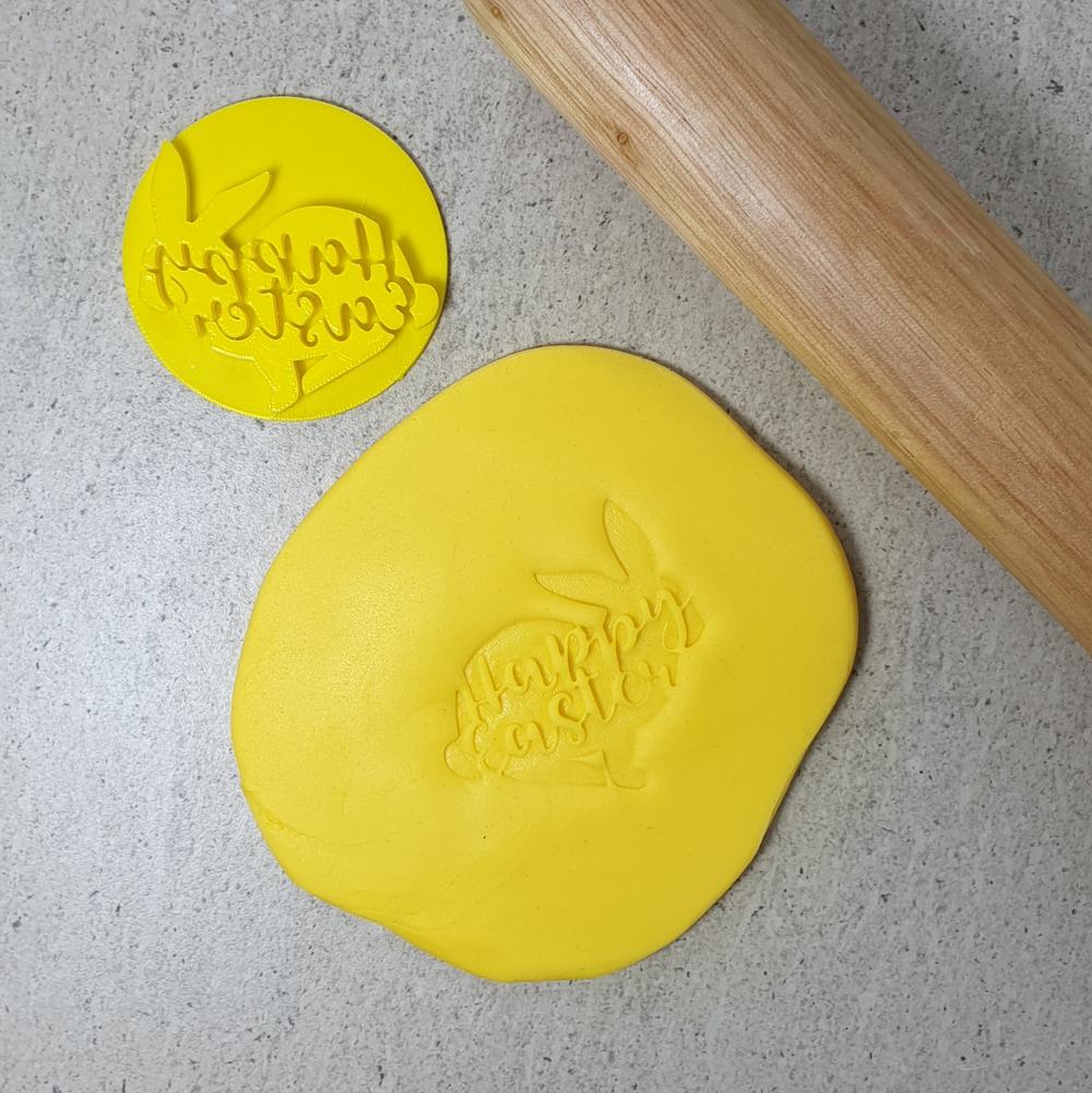 Custom Cookie Cutters Embosser - Happy Easter Bunny.