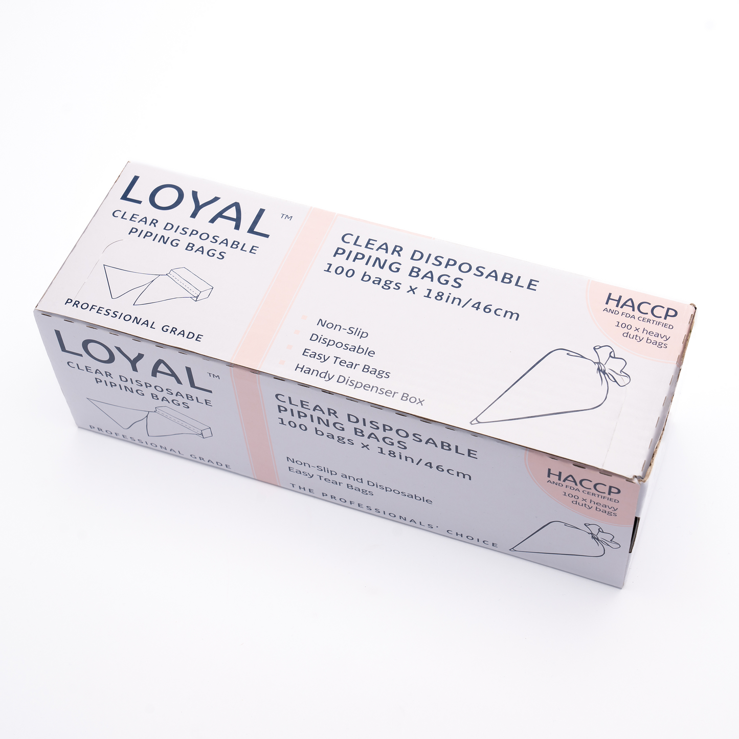 LOYAL Disposable Piping Bags are crafted to meet the highest standards of baking! Our disposable piping bags offer a dual density, non-slip exterior, whilst featuring a smooth interior for consistent piping and exceptional durability! Perfect for both light and heavy fillings, you don't have to worry about your piping bag splitting or ballooning.