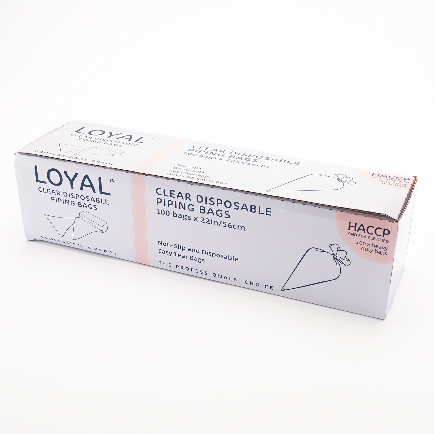 LOYAL Disposable Piping Bags are crafted to meet the highest standards of baking! Our disposable piping bags offer a dual density, non-slip exterior, whilst featuring a smooth interior for consistent piping and exceptional durability! Perfect for both light and heavy fillings, you don't have to worry about your piping bag splitting or ballooning.