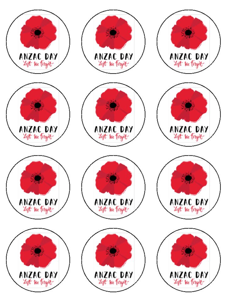 Edible Cupcake Toppers - Anzac Day Poppy Lest we forget