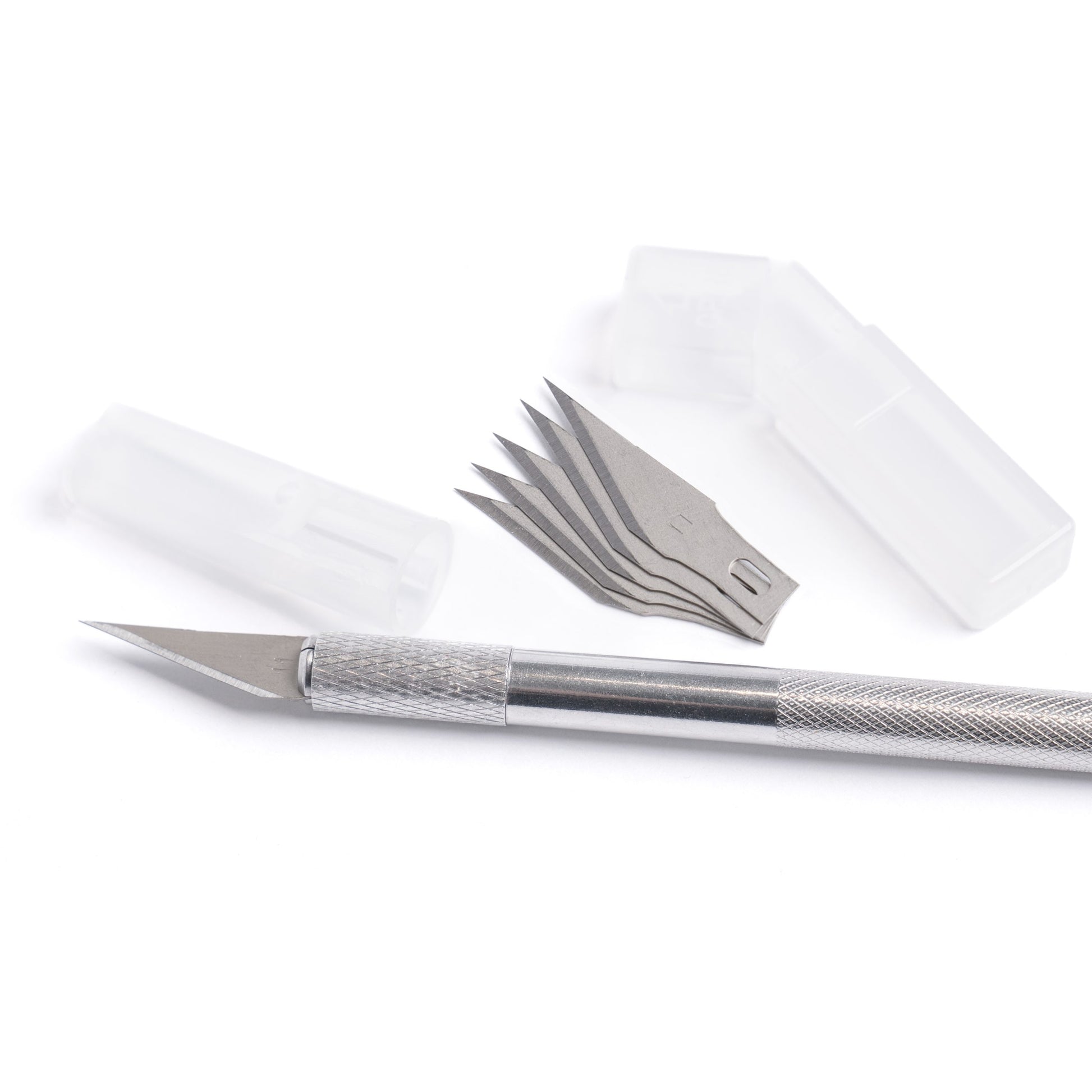 Made with durability in mind, the knife is constructed with an aluminium handle that features a non-slip grip allowing for steady control. The 4 jaw chuck design ensures a secure and stable blade attachment, guaranteeing precise cuts every time. Additionally included is a convenient safety blade cover and 5 replacement blades!