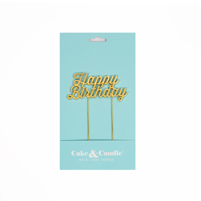 Gold Plated Cake Topper - HAPPY BIRTHDAY Topper is approximately 10cm wide, 5cm high (spike length is approximately 11cm).