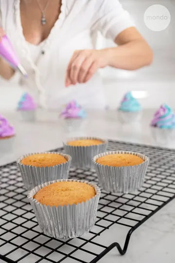 Use this sturdy non stick cake cooler to cool your baked goods, or drizzle and decorate and leave your creations to set. The elevated rack is ideal for hot baking tins, cooling cakes, cookies and is perfect for glazing.