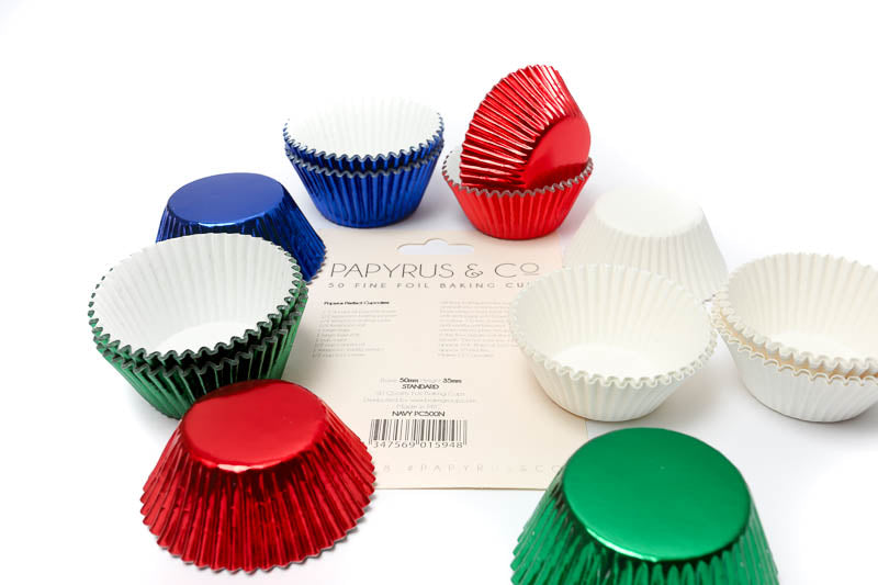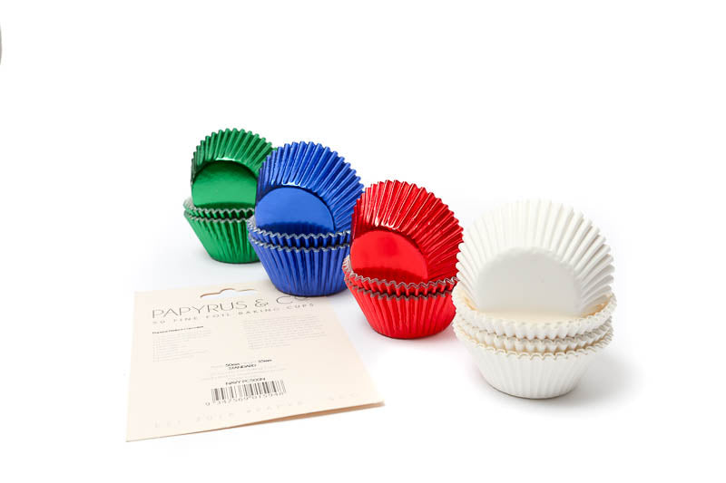 High quality foil baking cups (packs of 50) are now available from Papyrus in convenient hangsell packaging.
