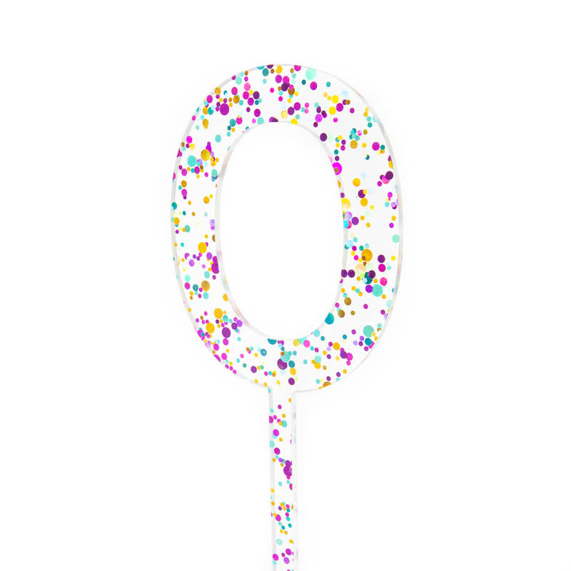 Rainbow Glitter Acrylic Cake Topper - Number 0
