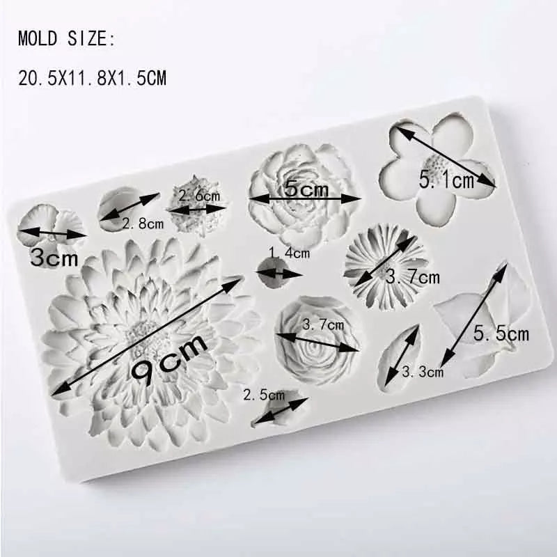 Instructions: For the best details, lightly dust the mould with cornflour or icing sugar. Press in small amount of sugar paste, gumpaste or fondant, roll gently over the silicone mould with the rolling pin and remove the excess paste with the sharp knife.