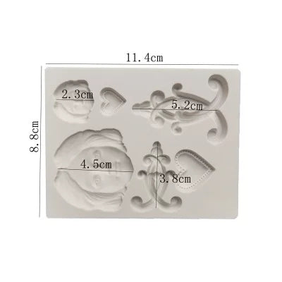 Instructions: For the best details, lightly dust the mould with cornflour or icing sugar. Press in small amount of sugar paste, gumpaste or fondant, roll gently over the silicone mould with the rolling pin and remove the excess paste with the sharp knife.