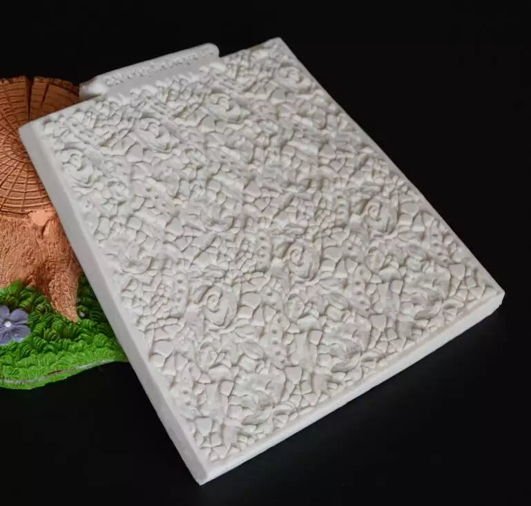 Instructions: For the best details, lightly dust the mould with cornflour or icing sugar. Press in small amount of sugar paste, gumpaste or fondant, roll gently over the silicone mould with the rolling pin and remove the excess paste with the sharp knife.