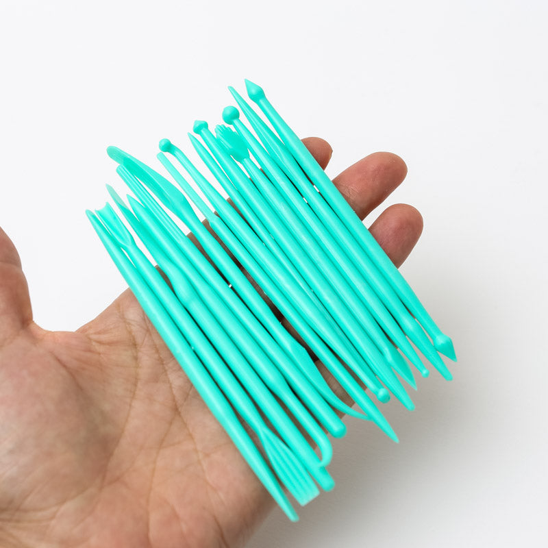 Each tool is double-sided so there are effectively 28 tools to work with, including mini bone tool, shell/blade tool, veining/frilling tool, leaf scraper, dresden tool, ball tool and frilling stick.