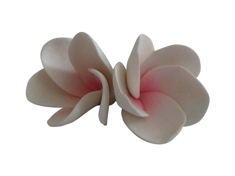 Single medium pink frangipani 4cm. Plumeria, also known as Frangipani, symbolize new life, perfection and springtime. These gorgeous readymade by hand from gum paste flowers are perfect for weddings, birthdays and other happy celebrations. Gum paste flowers offer a way of decorating cakes hassle free for both professional and amateur decorators. Each flower is bound by bendable wires that make for easy positioning and application on cakes. Achieve a realistic appearance and make your cakes blossom into beautiful creations by using Gum paste Flowers.