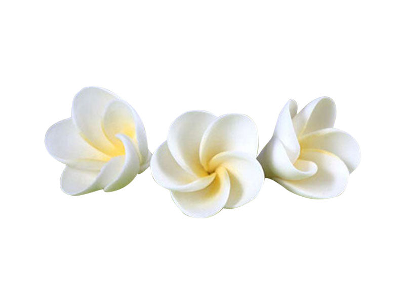 Single medium yellow frangipani 4cm. Plumeria, also known as Frangipani, symbolize new life, perfection and springtime. These gorgeous readymade by hand from gum paste flowers are perfect for weddings, birthdays and other happy celebrations. Gum paste flowers offer a way of decorating cakes hassle free for both professional and amateur decorators. Each flower is bound by bendable wires that make for easy positioning and application on cakes. Achieve a realistic appearance and make your cakes blossom into beautiful creations by using Gum paste Flowers.