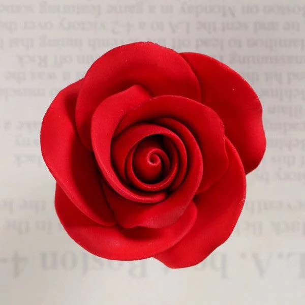 Single tea rose medium red 4cm. Symbolizing love, honour, faith, and beauty, the gorgeous Rose is a timeless and elegant flower that is used for almost every occasion. With its charming blooms and variety of meanings, the rose is perfect for weddings, birthdays and other celebrations. Readymade by hand from gum paste, these pre-wired Medium Tea Roses can be easily placed on cakes and offer a way of decorating hassle free for both professional and amateur decorators. Achieve a realistic appearance and make your cakes blossom into beautiful creations.