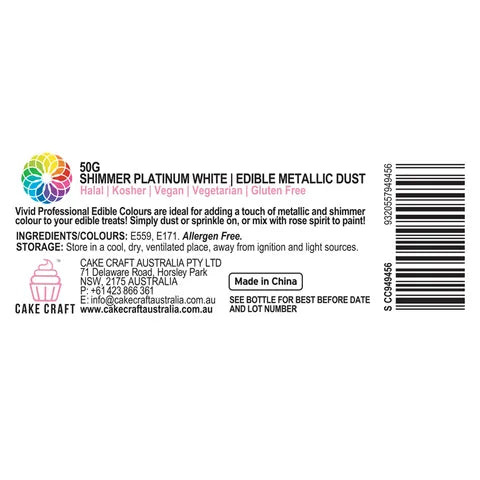 Vivid Edible Metallic Dust - Platinum White Shimmer 50g