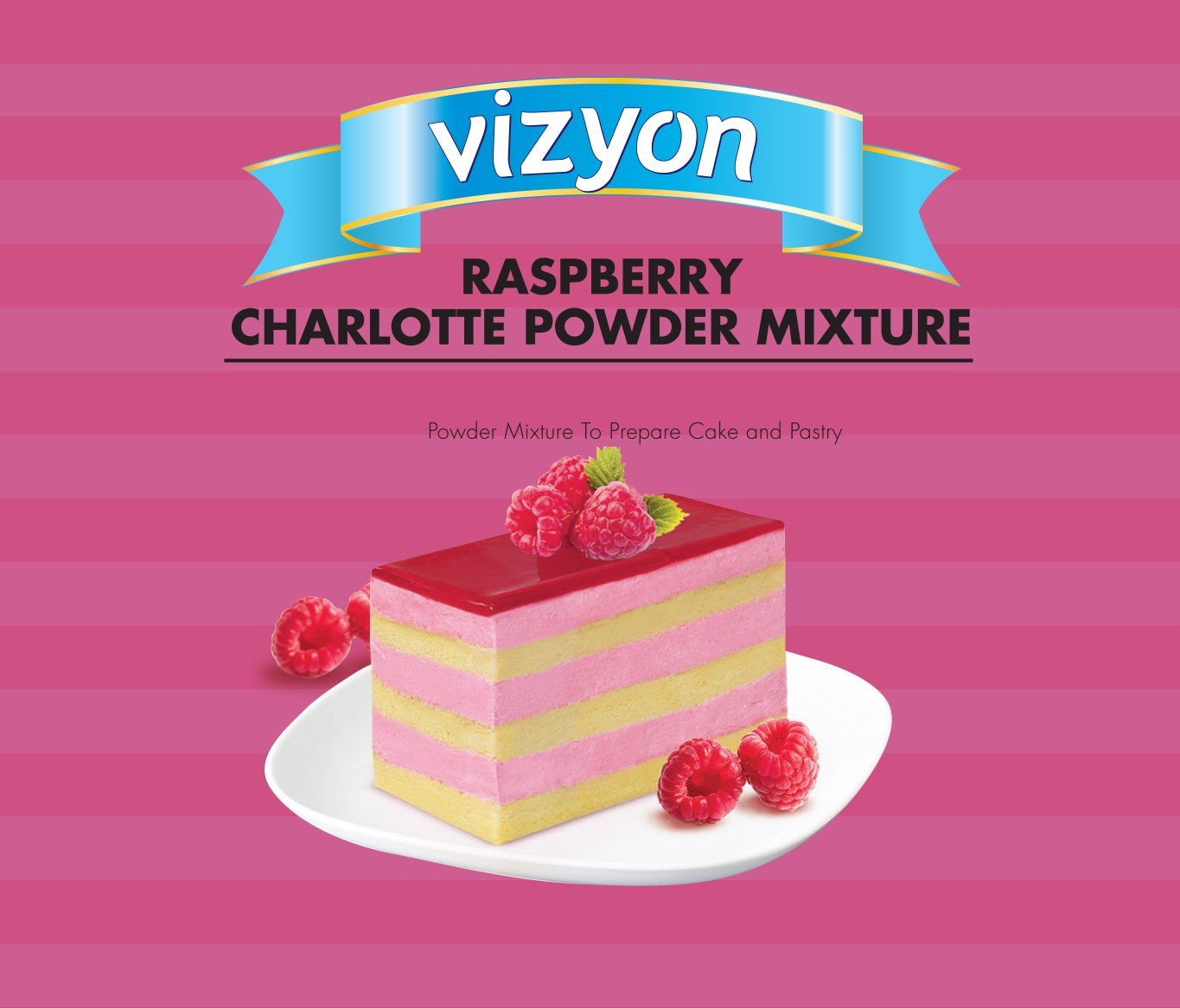 Vizyon Raspberry Charlotte mousse powder is a stabiliser which is perfect for use in preparing fillers and flavouring for cakes and pastries. The Charlotte Mousse mixes allow you to create uniquely designed and flavoured desserts. As the name suggests, the Vizyon Charlotte Mousse is also fabulous to be served on its own as a stand-alone mousse. Vizyon Charlotte Mousse is a non-gelatine based product that gives your cakes a light and airy texture while being very easy to work with. In addition, the mixtures comes in a range of pre-existing flavours and colours to enhance the look and taste of your cakes and pastries. Available in a resealable, foil sachet for convenient and economical use.